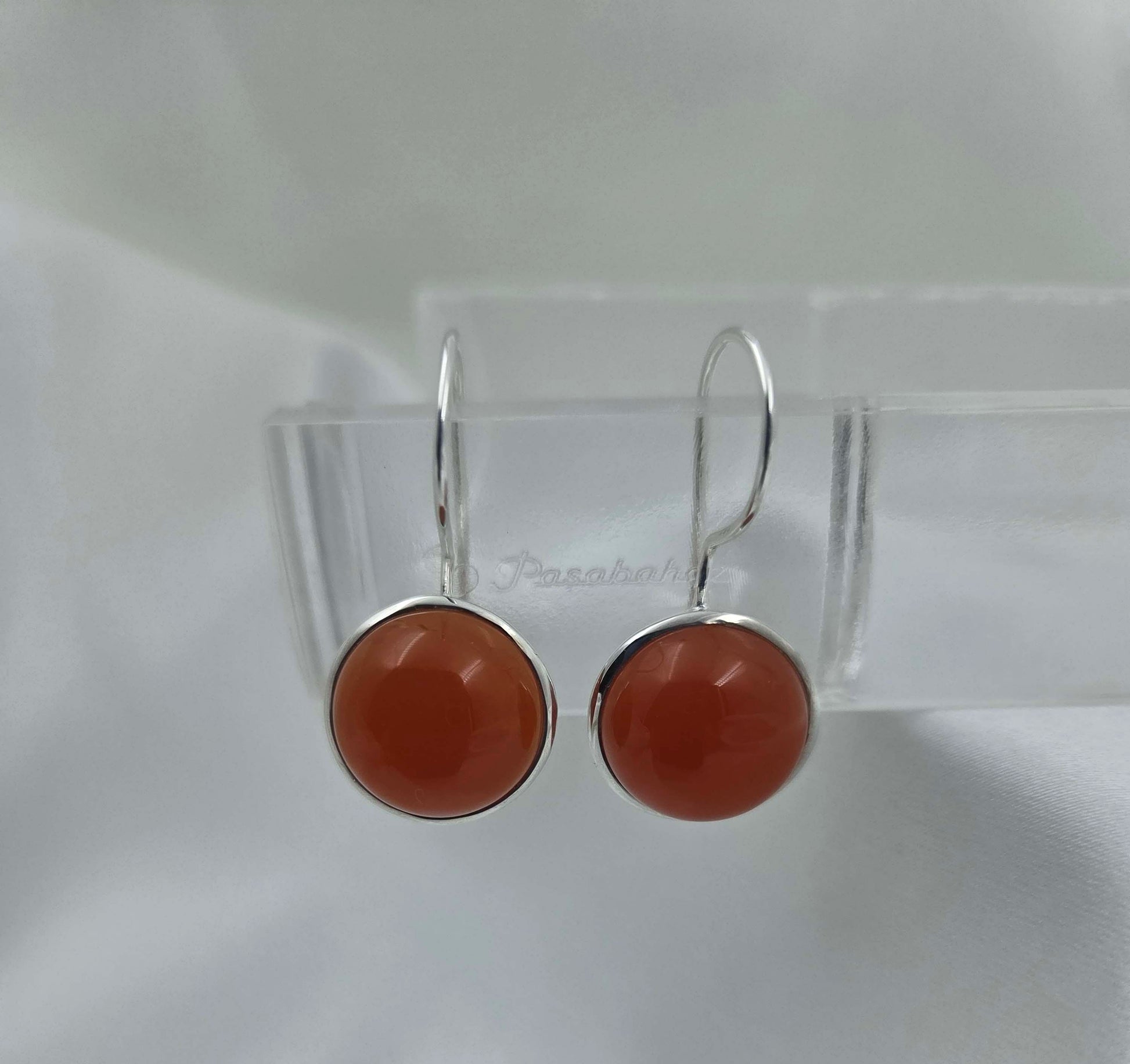 A pair of glowing carnelian cabochons set in pure silver. Minimal yet full of warmth, the AmberDot earrings mirror the pendant’s quiet radiance — a gentle spark that lights up your face.