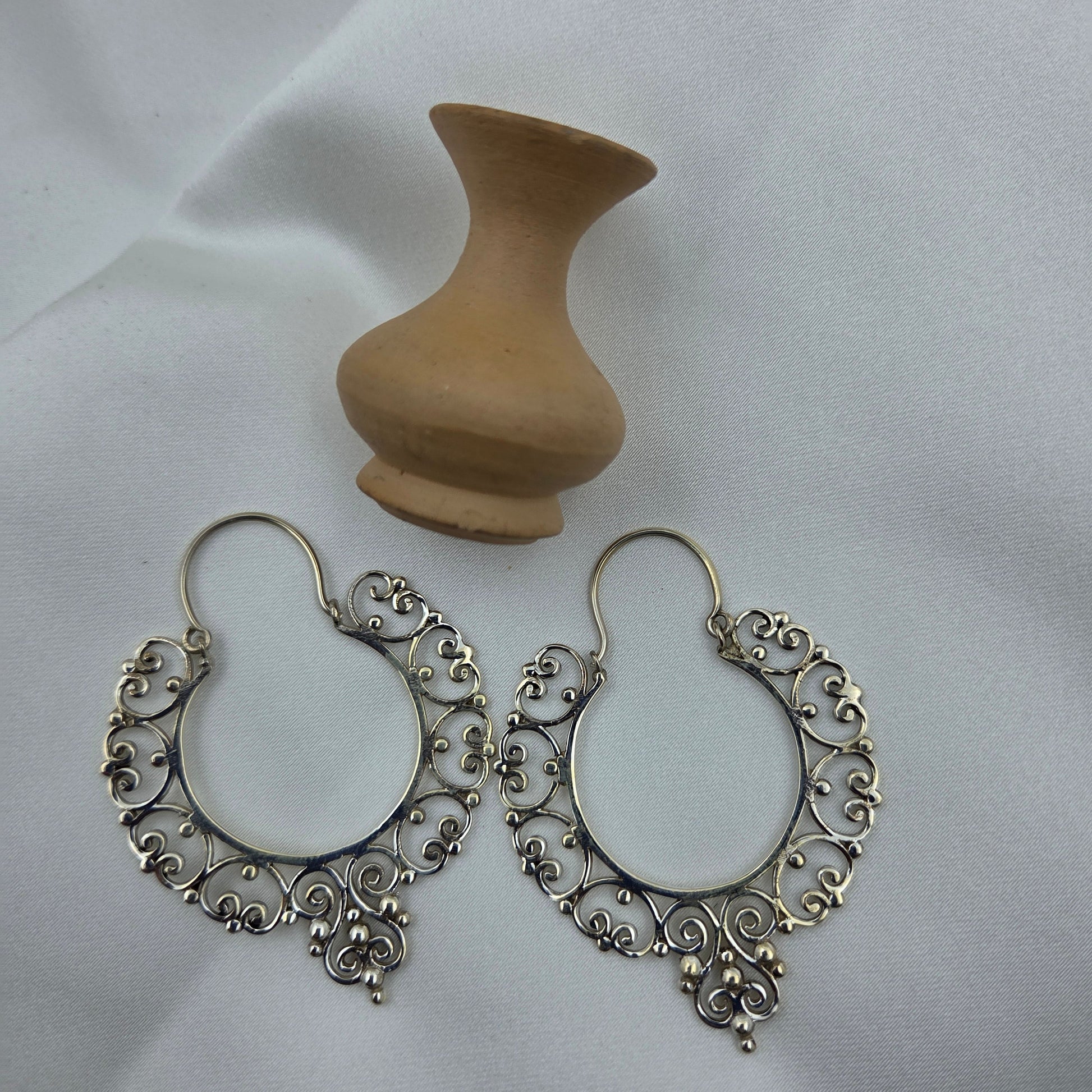 The Nayab Bali is a rare expression of silver artistry — fine swirls shaped into a light, open circle that feels like lace in metal. Handcrafted in certified 92.5 sterling silver, it balances detail with wearability, making it as unique and enduring as its name suggests.